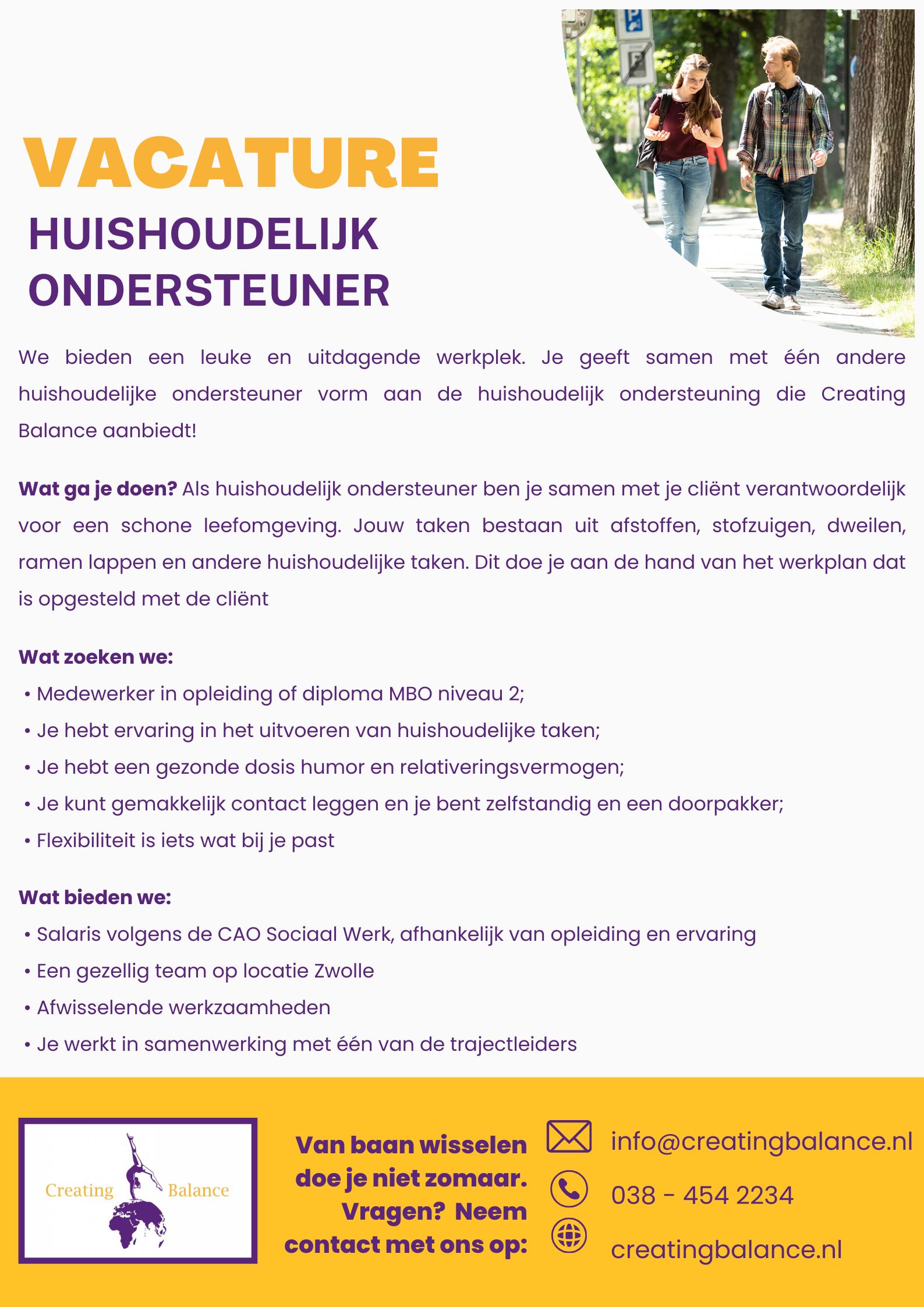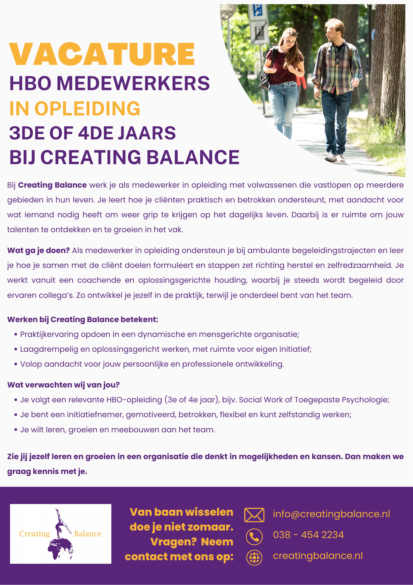 Interesse? Stuur dan je motivatie met curriculum vitae naar info@creatingbalance.nl.